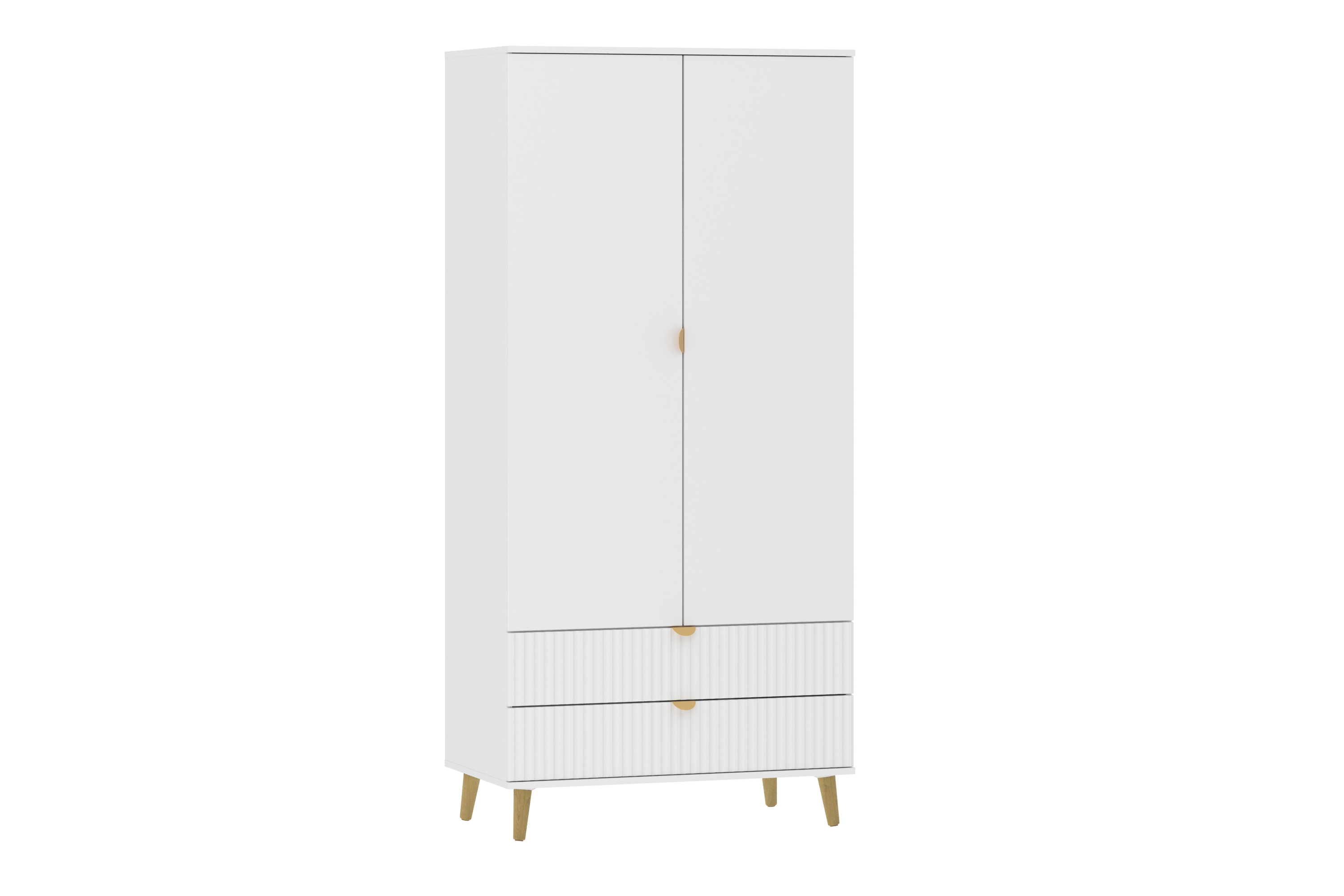 Модульная композиция включает прикроватную тумбу, оснащенную выдвижными ящиками, которые открываются плавно и бесшумно благодаря шариковым направляющим, а в шкафу удобно организовать предметы одежды, при этом высокие опоры облегчают процесс уборки.