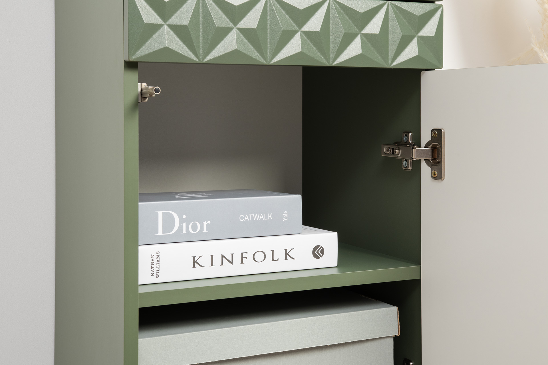 Тумба Марион 16.167 дымчатый зеленый K521, олива шагрень AG 1050 ПВХ, белый PE шагрень