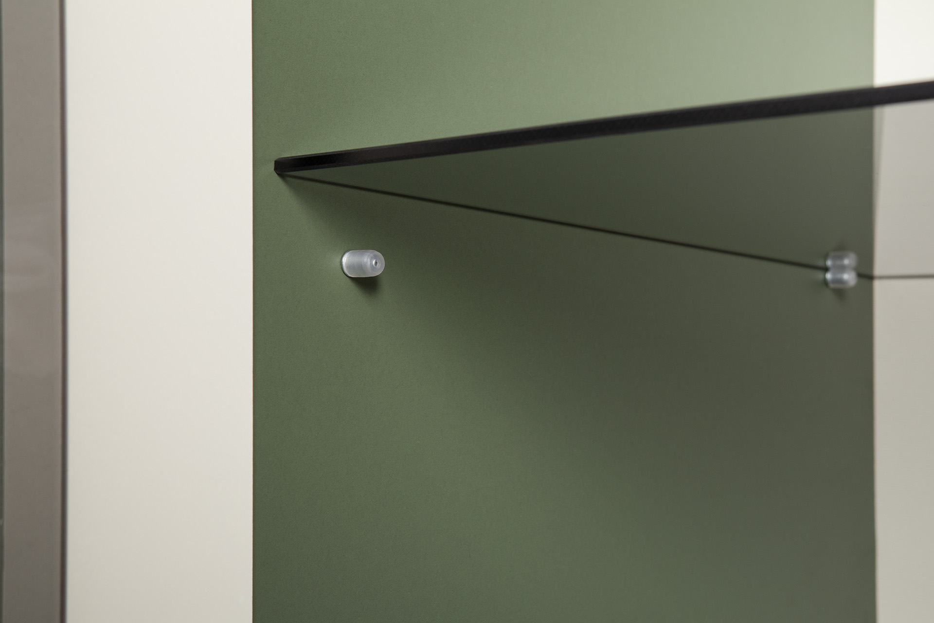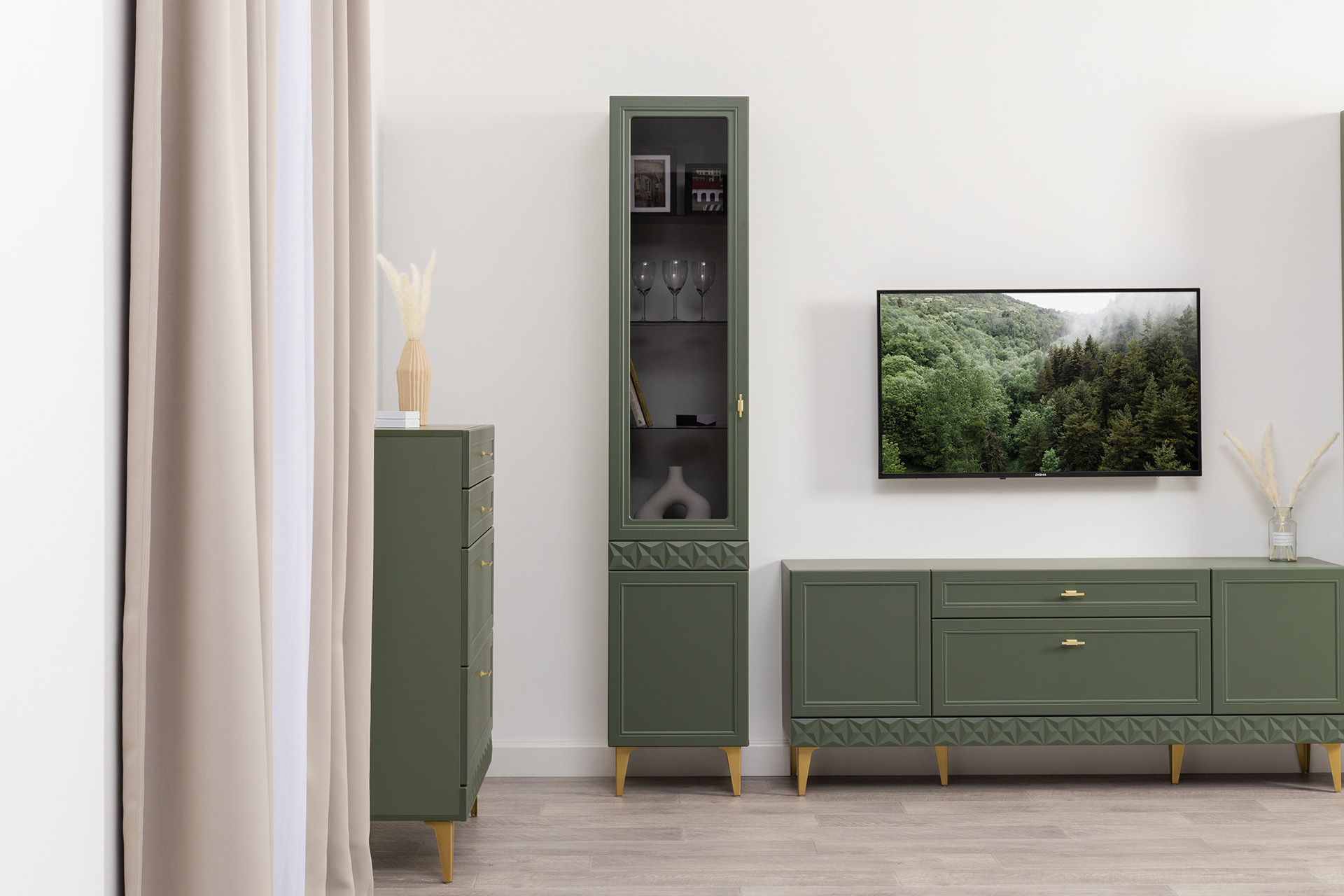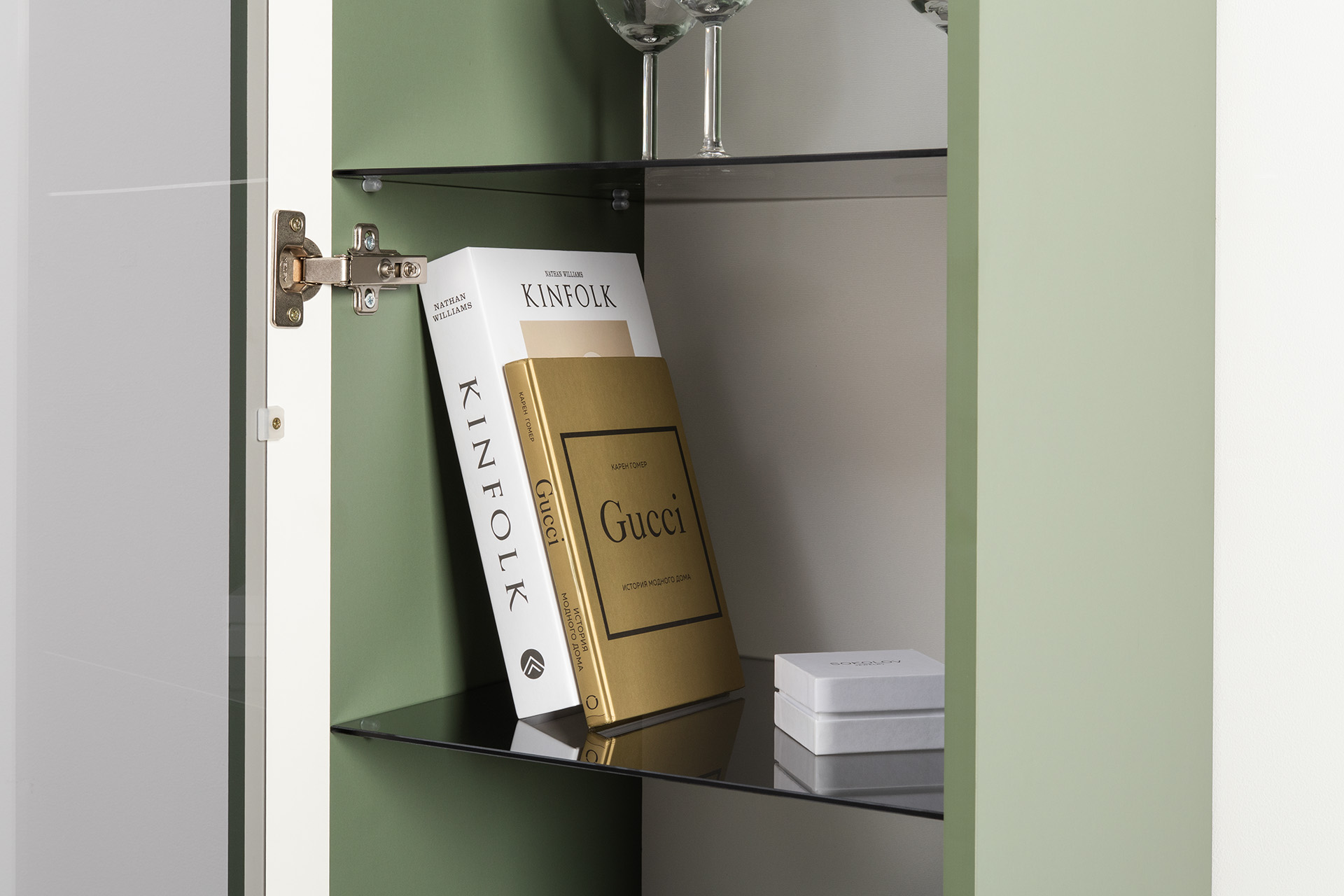 Шкаф-витрина Марион 16.397.02 дымчатый зеленый K521, олива шагрень AG 1050 ПВХ