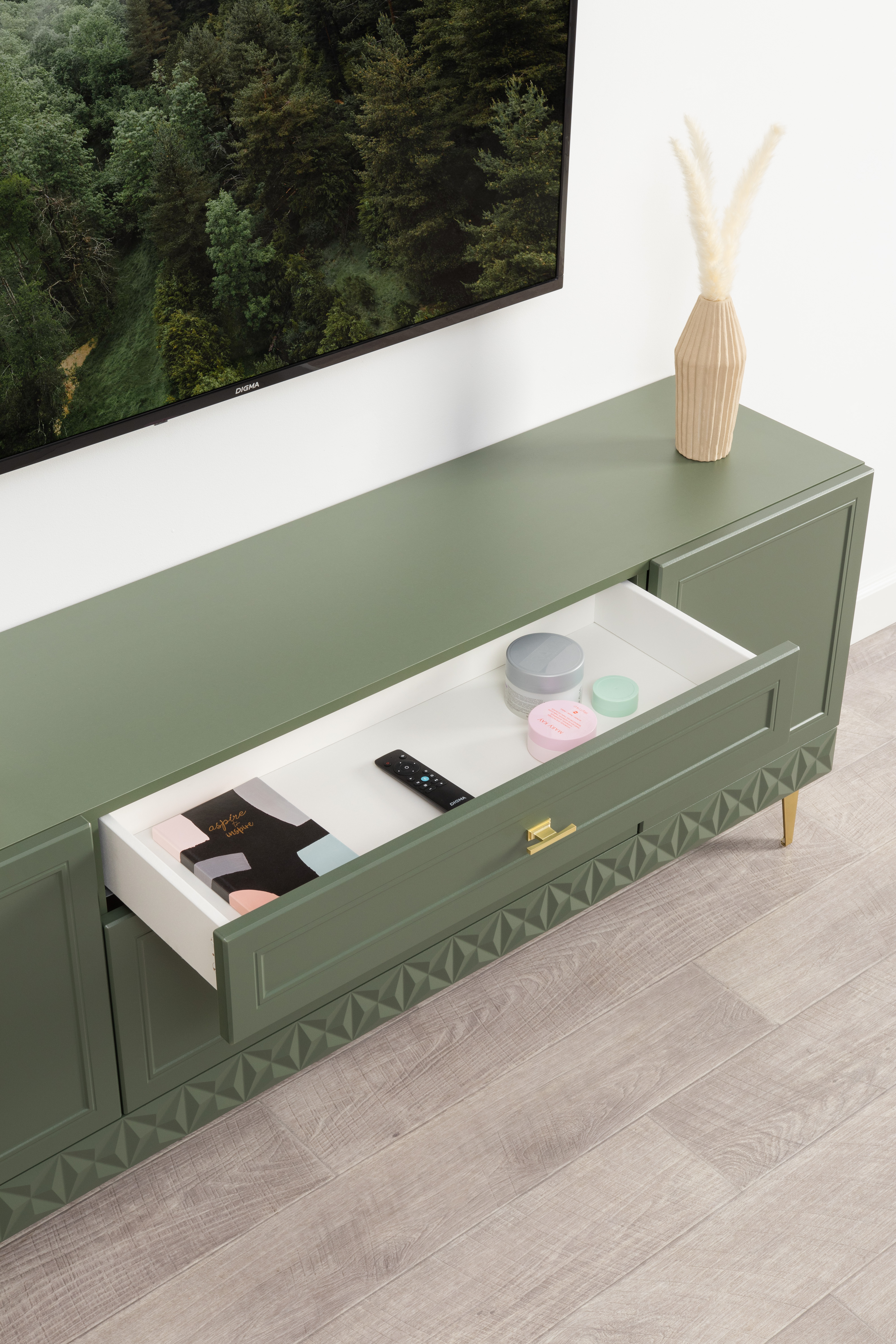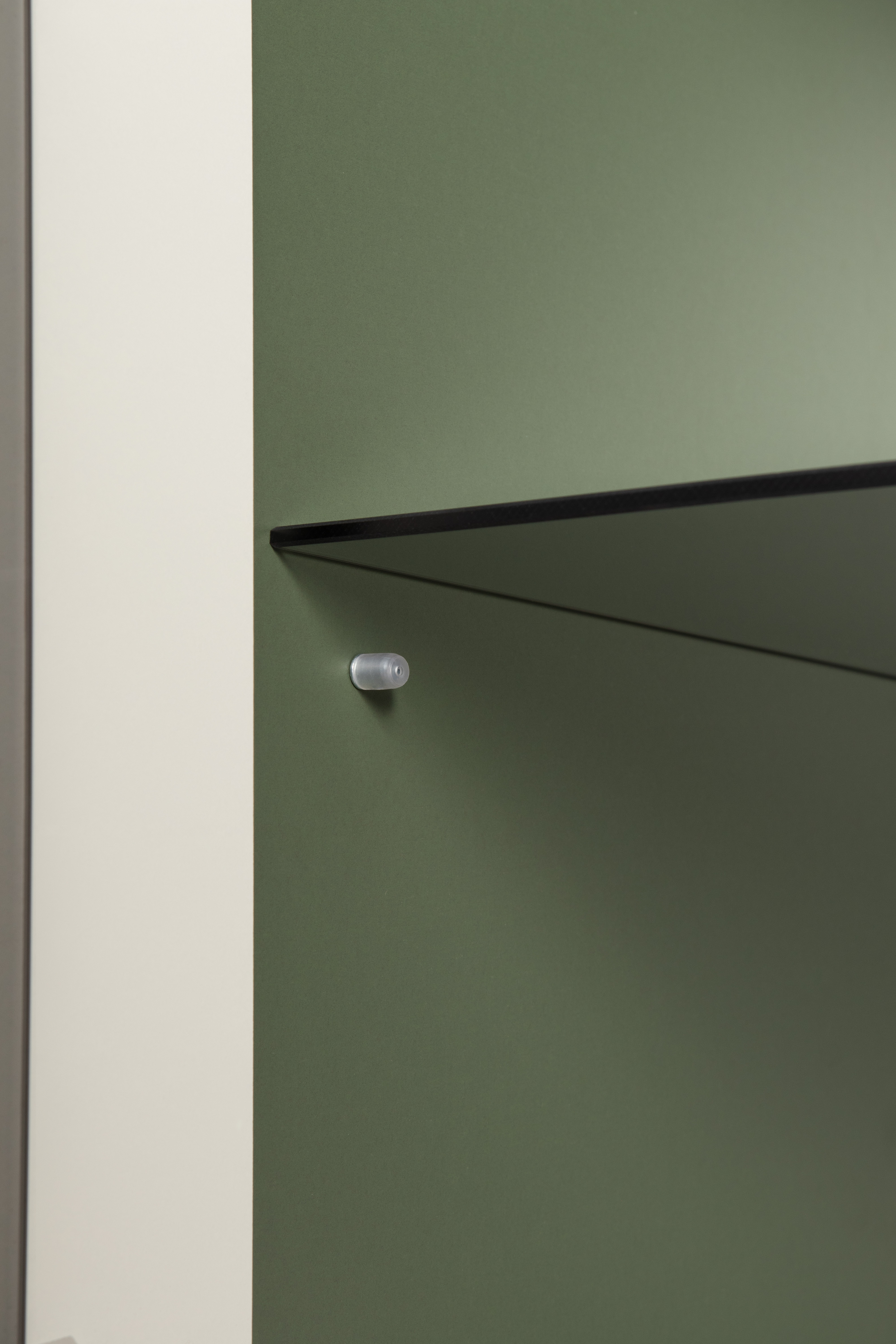 Гостиная Марион композиция 2 дымчатый зеленый K521, олива шагрень AG 1050 ПВХ, белый PE шагрень (собирается на любую сторону)