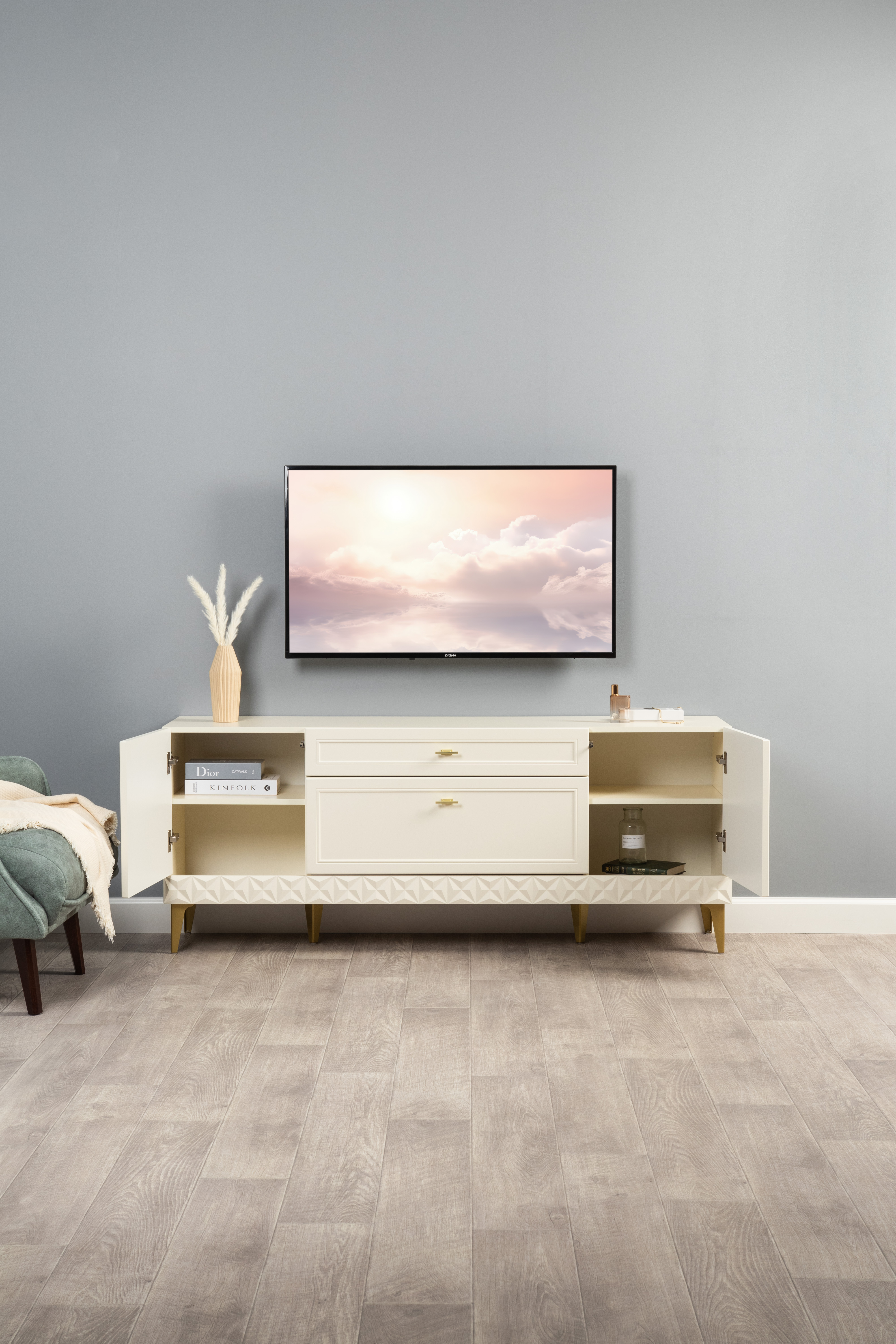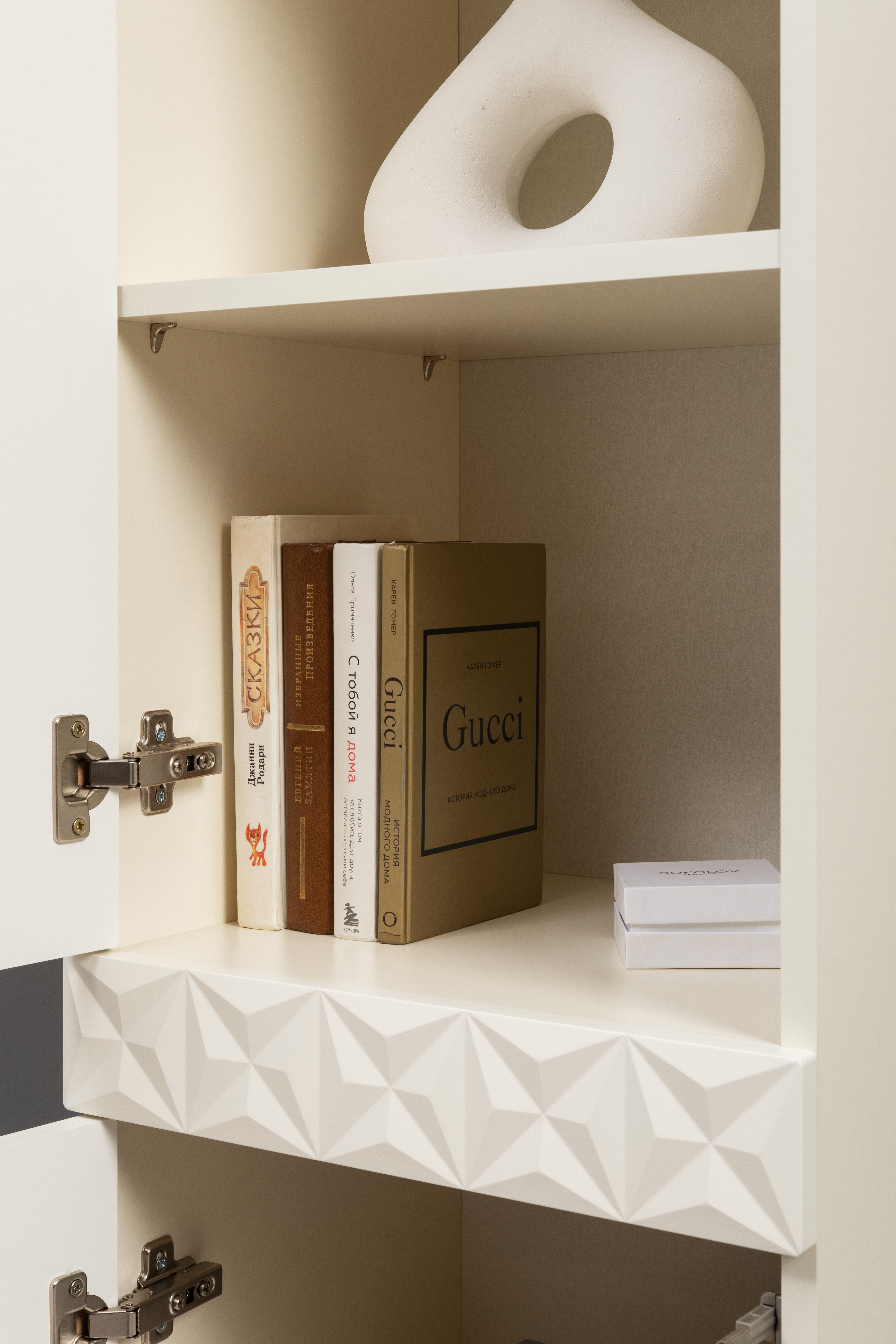 Гостиная Марион композиция 2 слоновая кость С341 PE, слоновая кость 6898 ПВХ, белый PE шагрень (собирается на любую сторону)