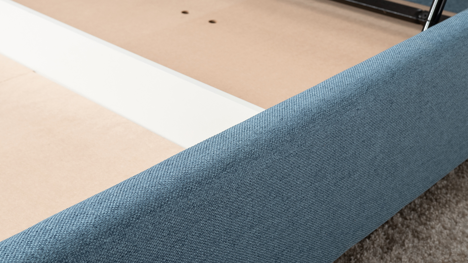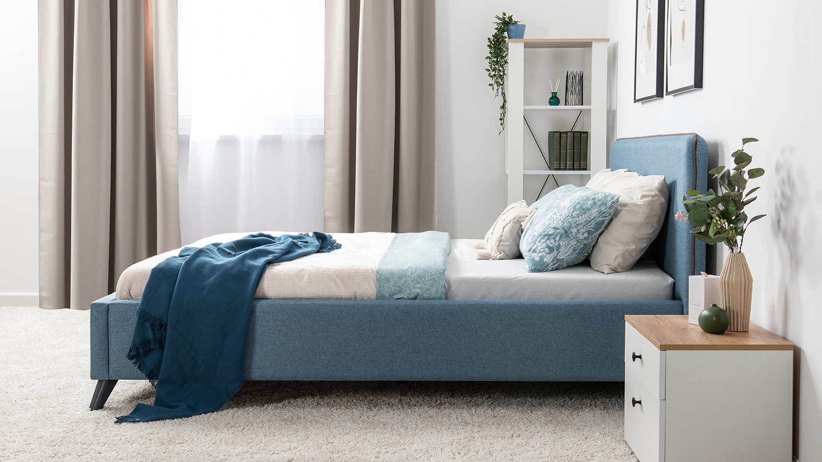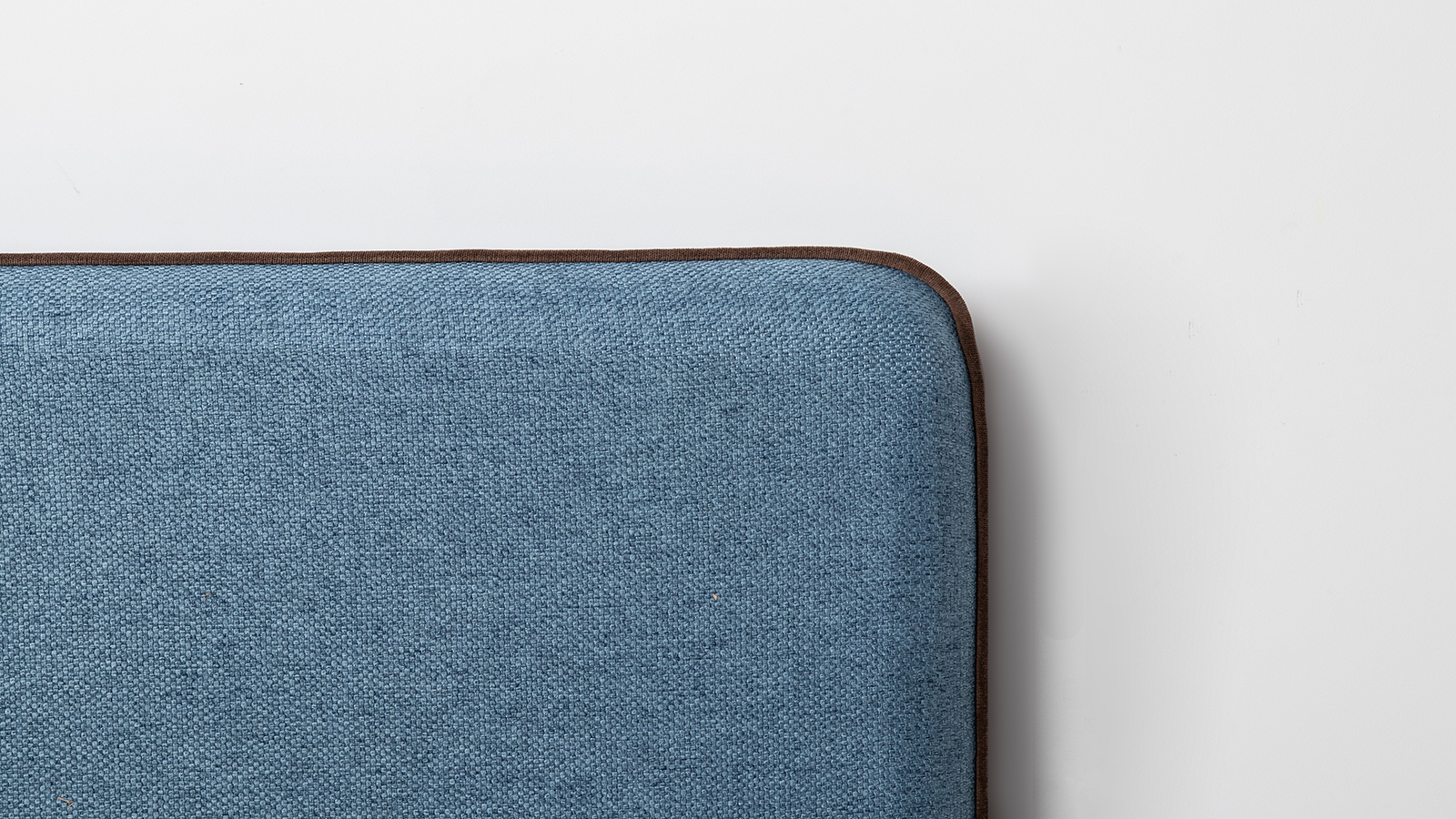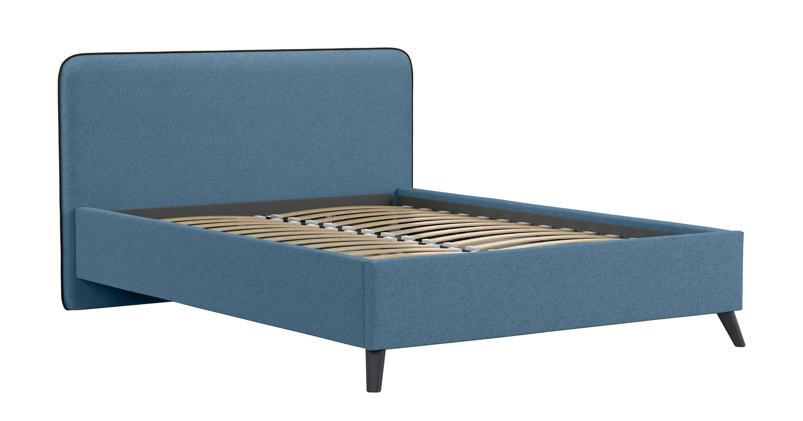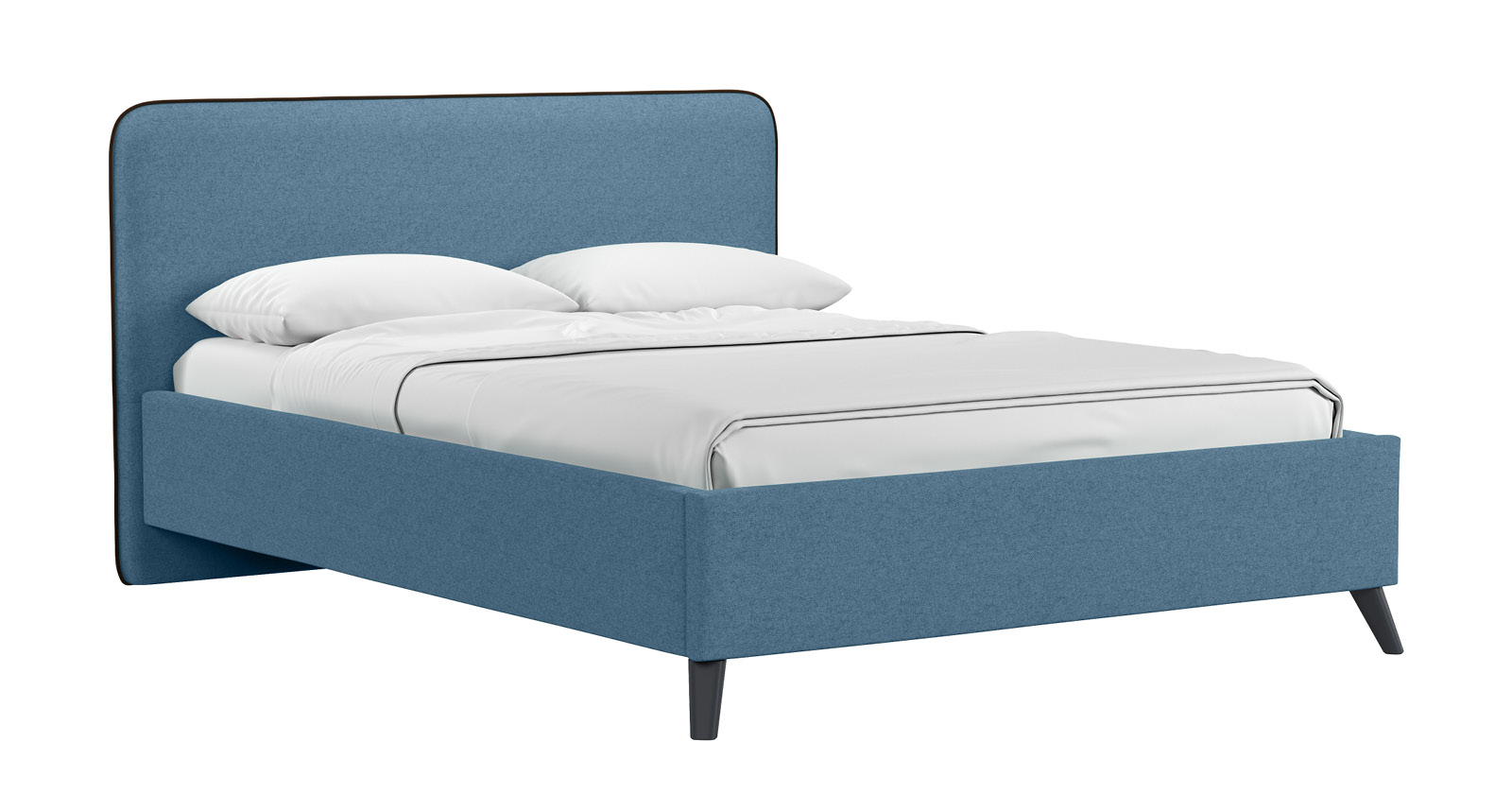Кровать Миа 140 рогожка светло-синий, кант желтовато-коричневый с ортопедическим основанием и подъемным механизмом