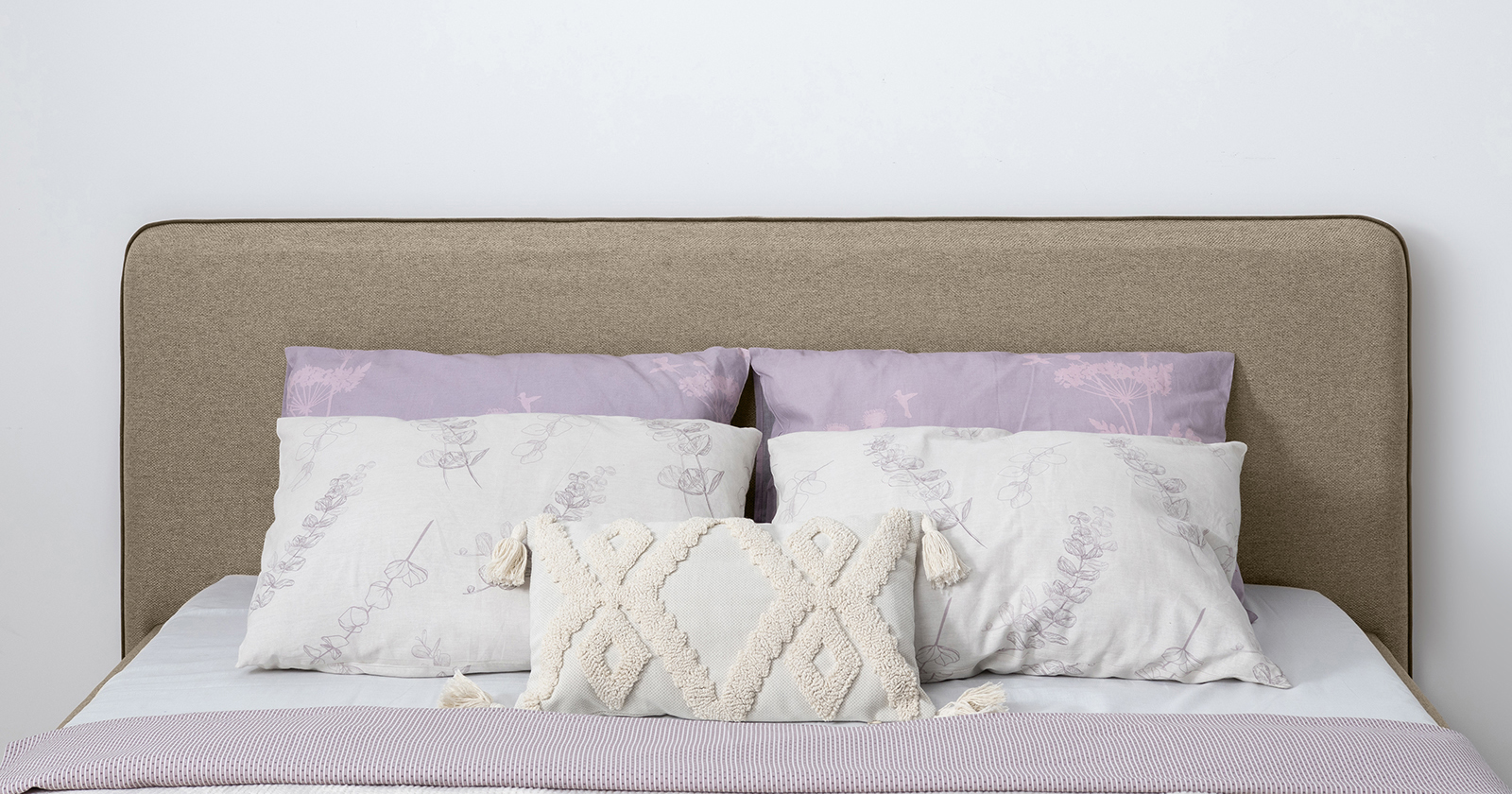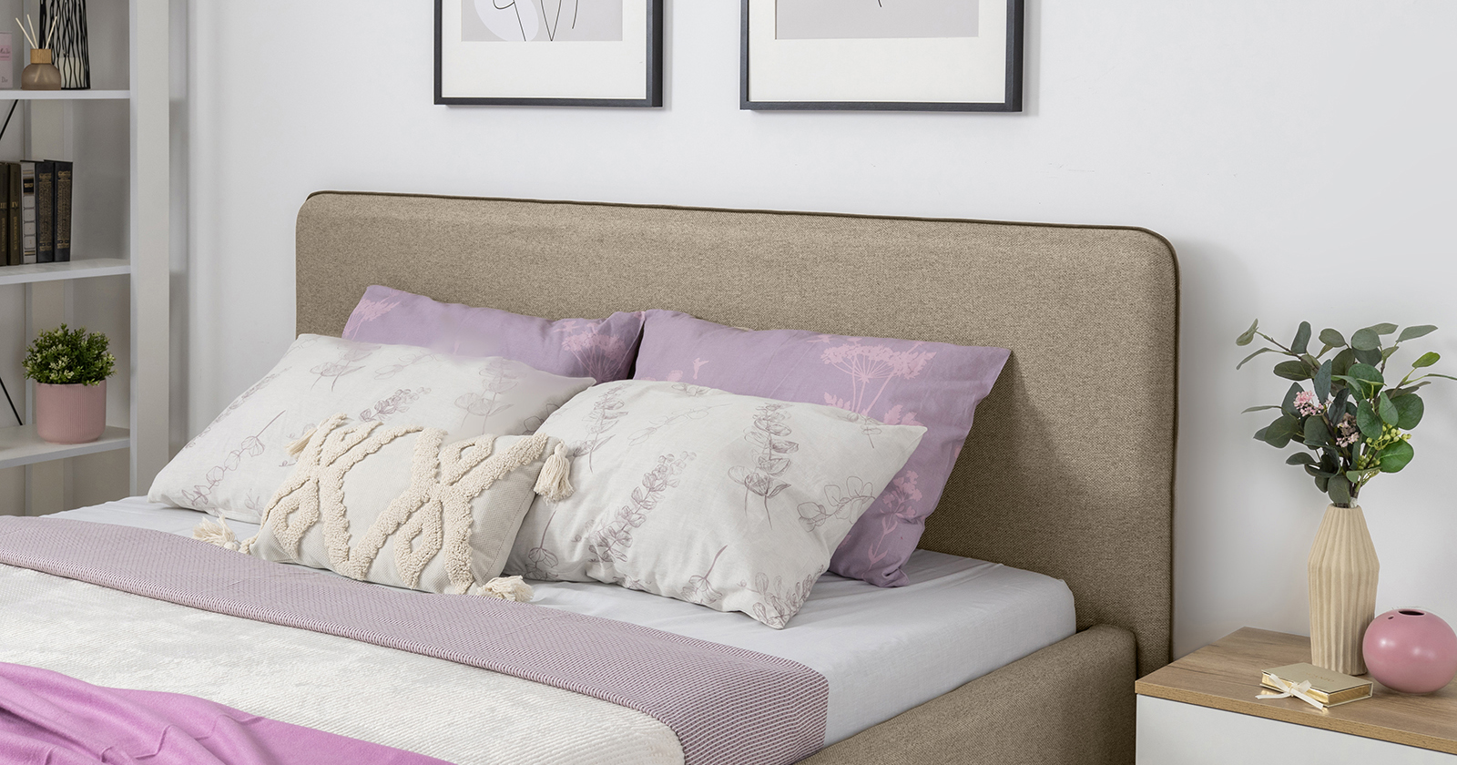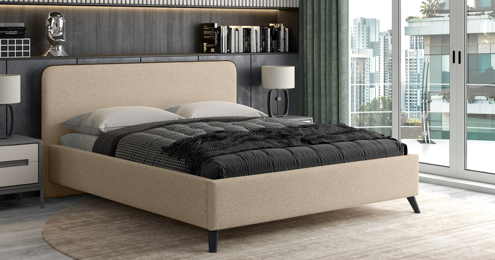 Кровать Миа 180 светло-бежевый, кант желтовато-коричневый с ортопедическим основанием и подъемным механизмом