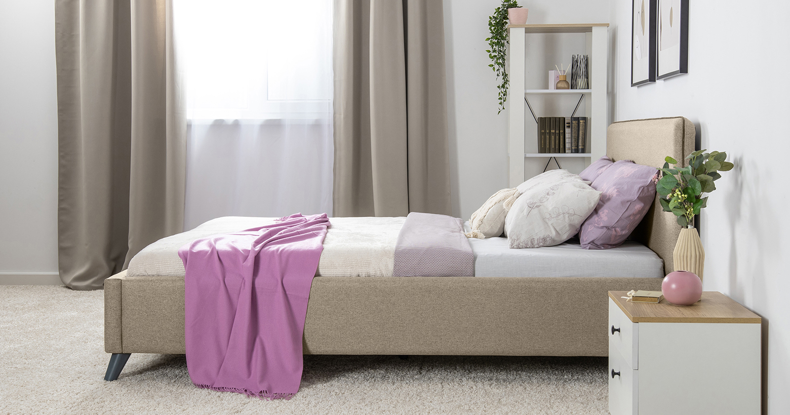 Кровать Миа 180 светло-бежевый, кант желтовато-коричневый с ортопедическим основанием и подъемным механизмом