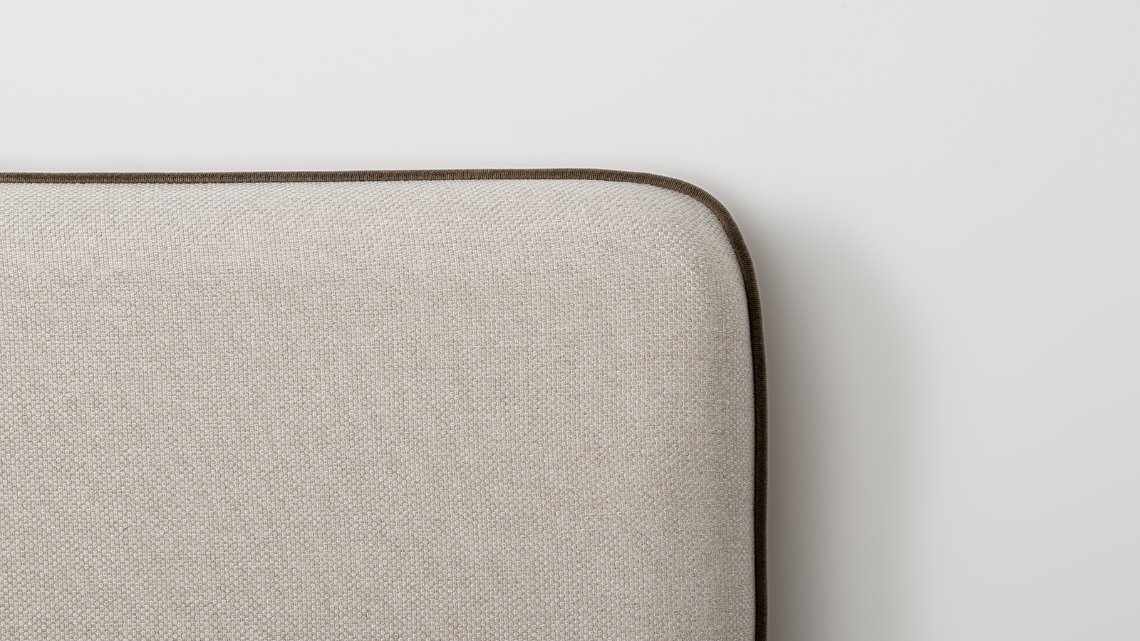 Кровать Миа 160 рогожка светло-бежевый, кант желтовато-коричневый с ортопедическим основанием и подъемным механизмом