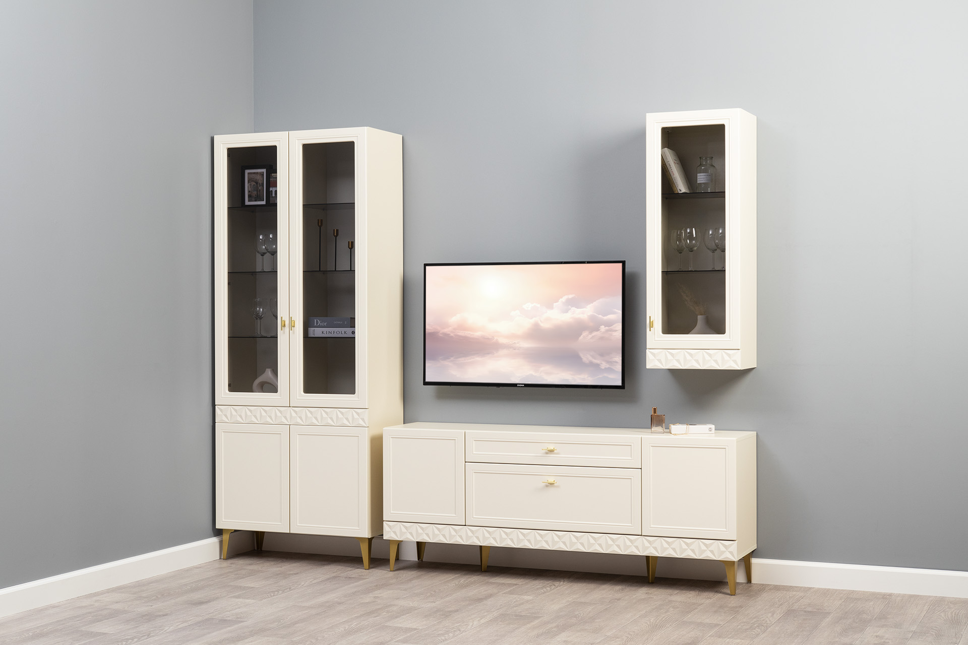 Шкаф навесной в гостиную Бэль 10.63 белый премиум, дуб золотой CRAFT