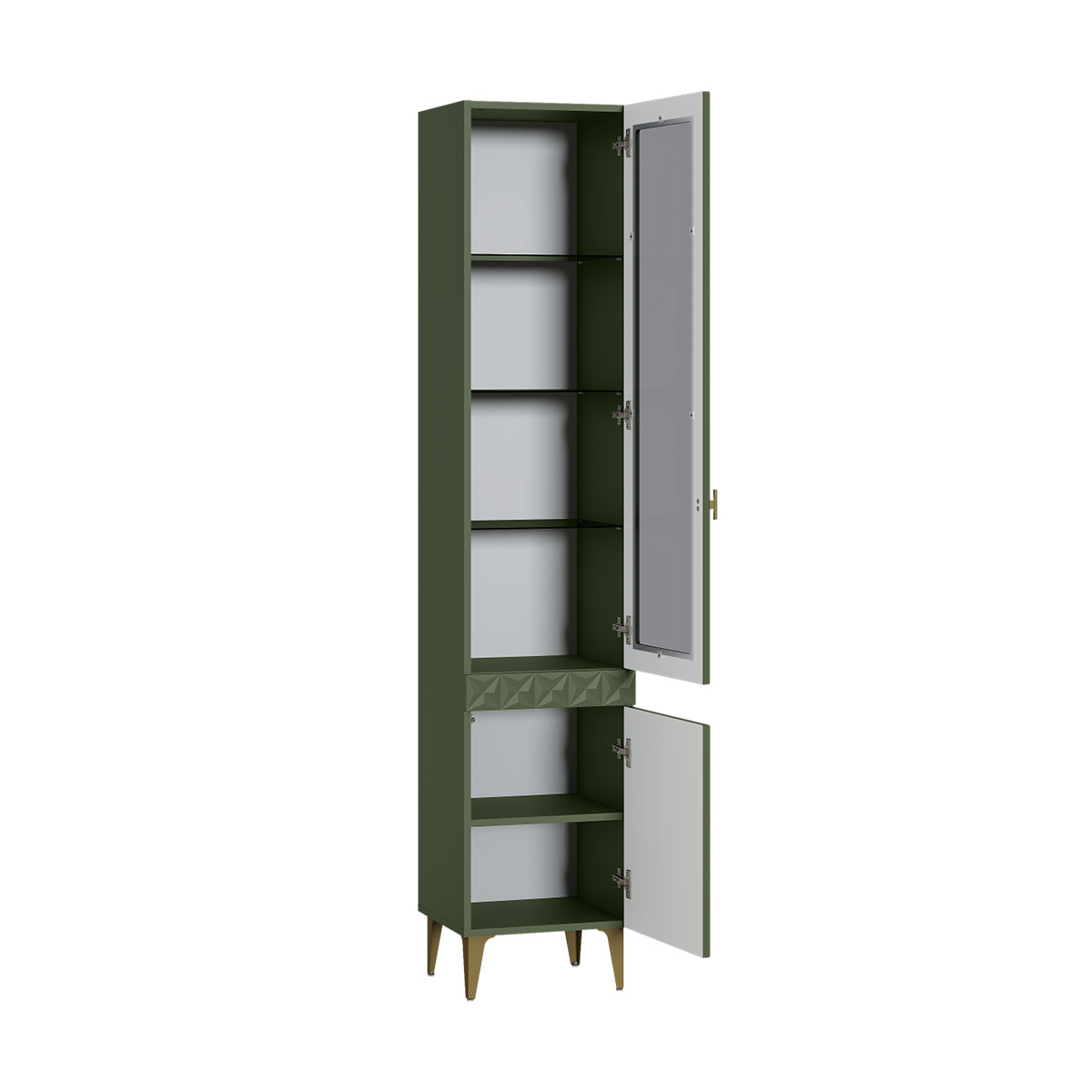 Шкаф-пенал Марион 16.333.01 дымчатый зеленый K521, олива шагрень AG 1050 ПВХ (собирается на любую сторону)