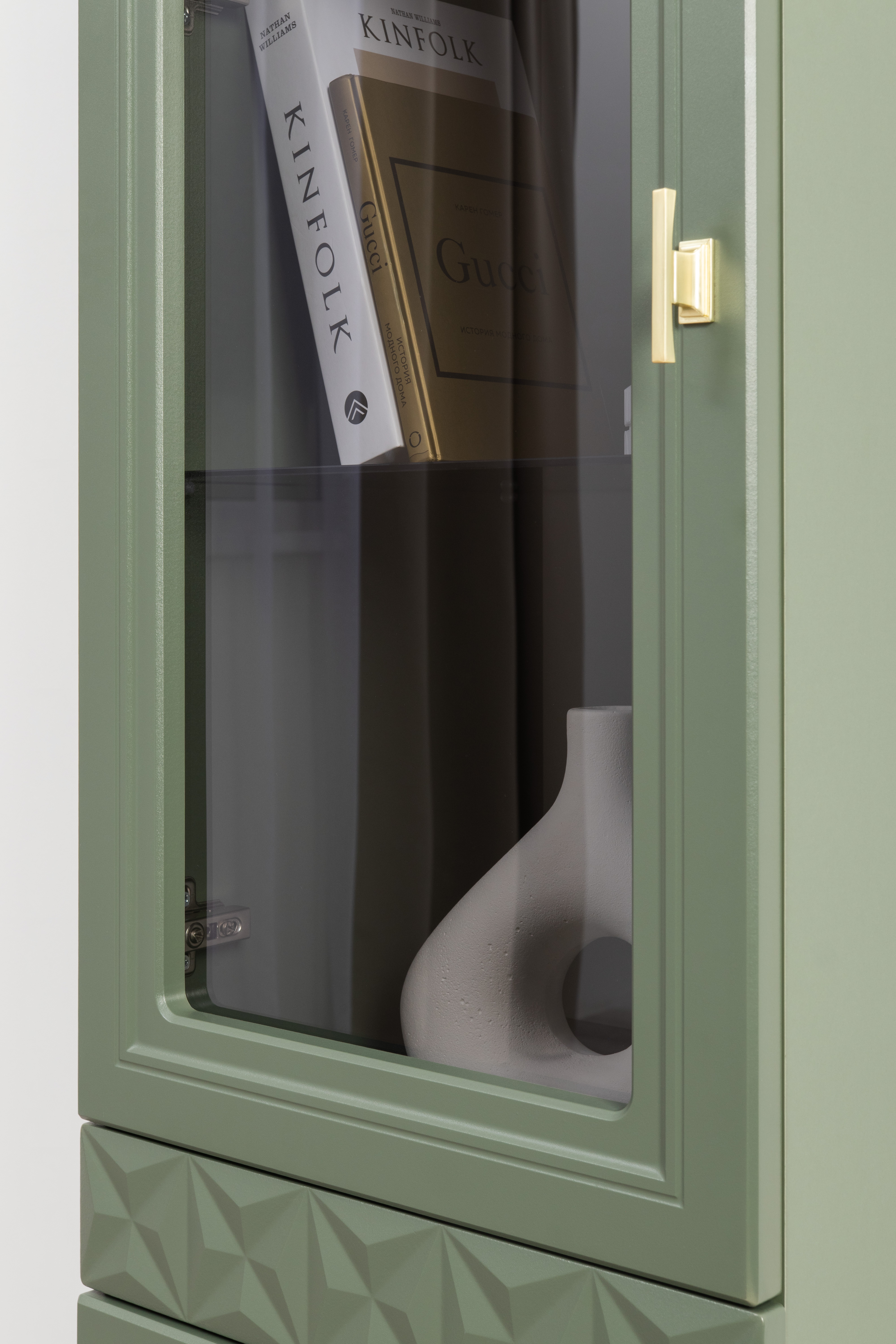 Шкаф-витрина Марион 16.397.02 дымчатый зеленый K521, олива шагрень AG 1050 ПВХ