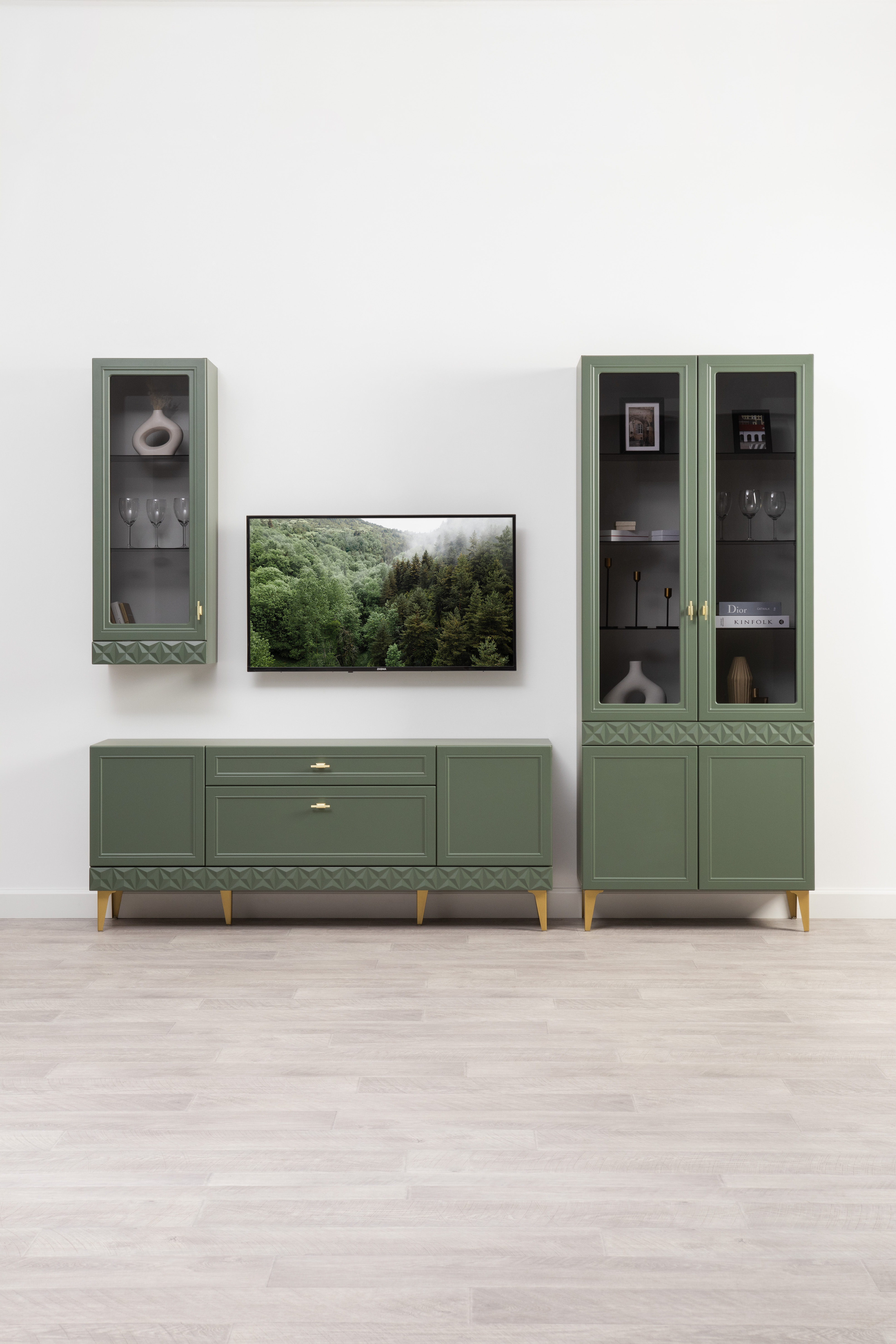 Шкаф-витрина Марион 16.397.02 дымчатый зеленый K521, олива шагрень AG 1050 ПВХ