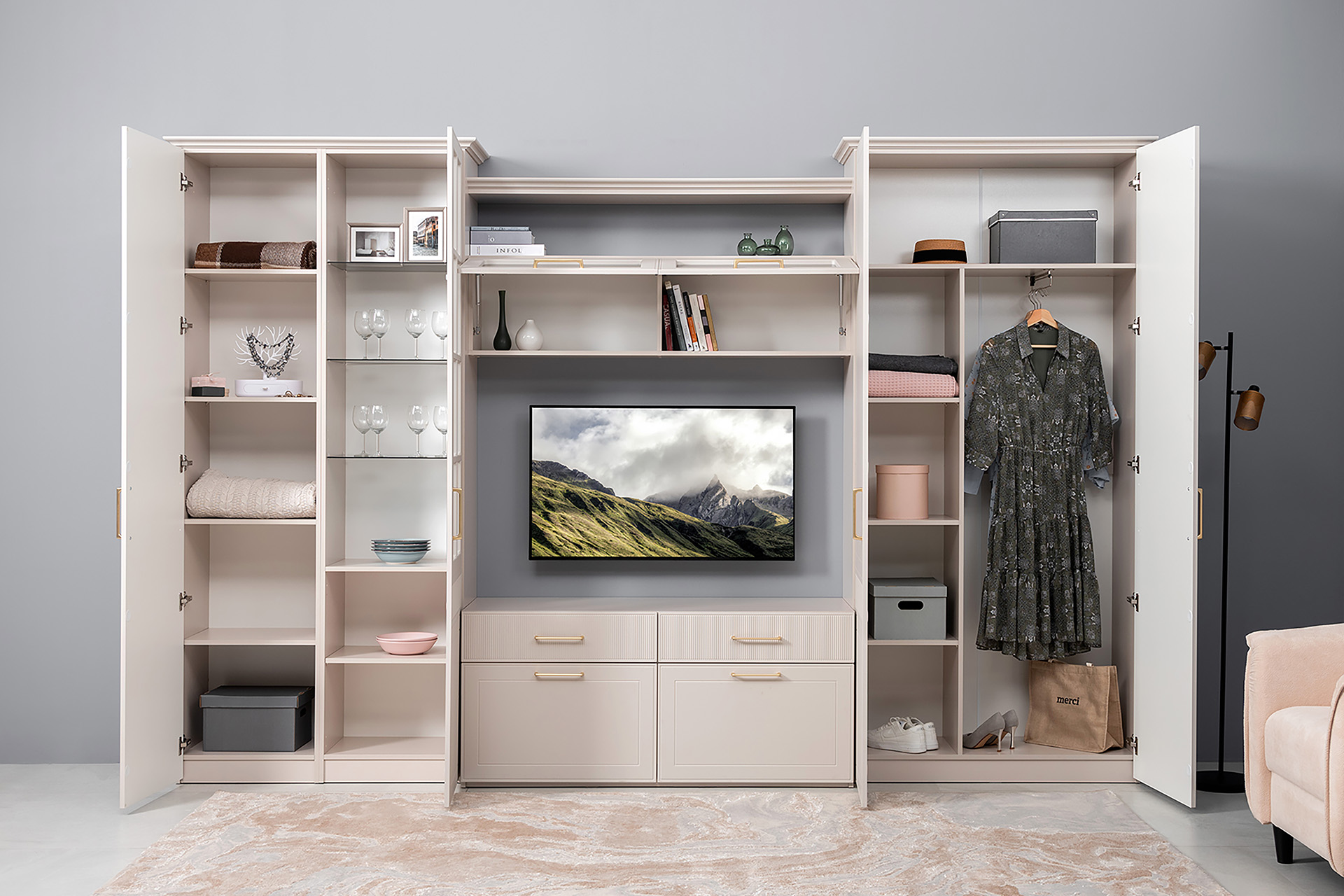 Тумба под ТВ Ричфорд 16.61 кашемир 5981 BS, моно керамика D166-2 ПВХ, белый PE шагрень