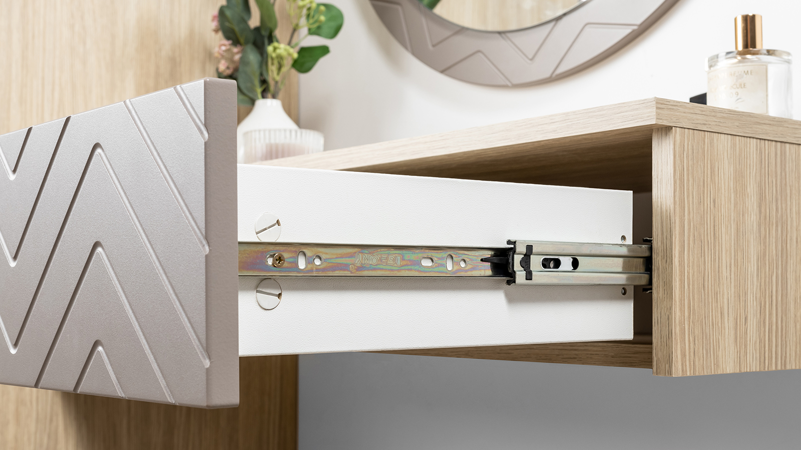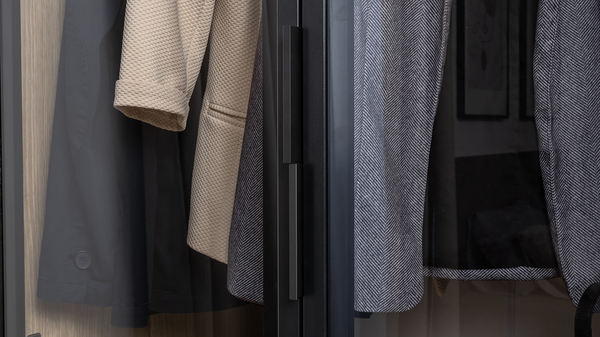 Фасады выполнены из МДФ с матовой поверхностью, изящная фрезеровка даёт визуальную лёгкость. Приглушённые натуральные цвета и чистые линии позволяют расслабиться и не фокусироваться на деталях интерьера. Лицевая фурнитура из натурального ясеня.